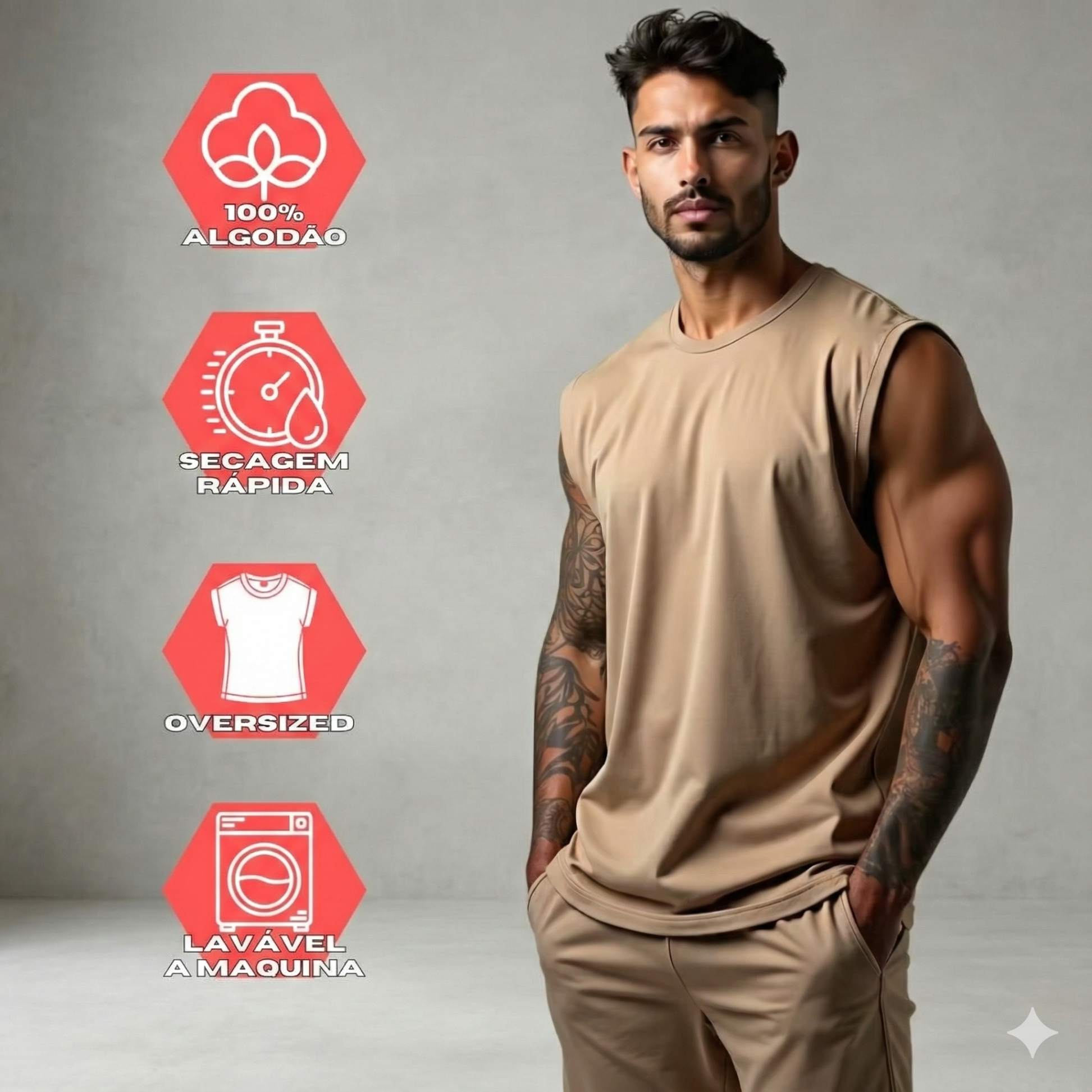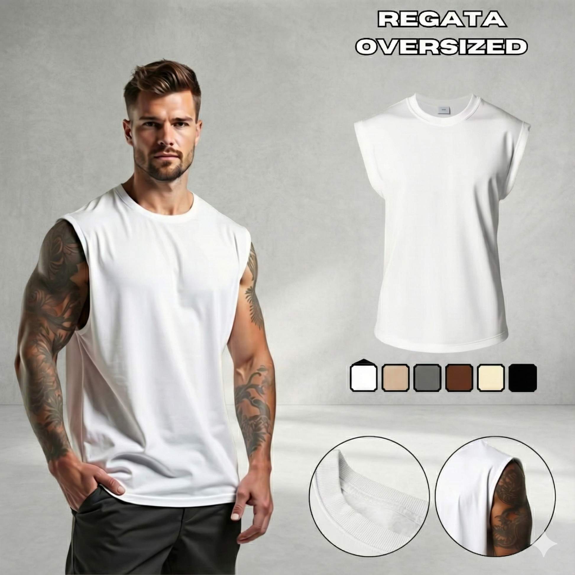 A Regata Oversized Masculina Casual é o item perfeito para homens que buscam conforto sem abrir mão do estilo. Disponível em diversas cores 🌈, como Preto, Cáqui, Branco, Bege, Cinza e Marrom, essa peça versátil combina com diferentes looks, desde os mais despojados até os mais elegantes. Seja para um passeio no parque ou um happy hour com os amigos, esta camiseta é a escolha ideal.